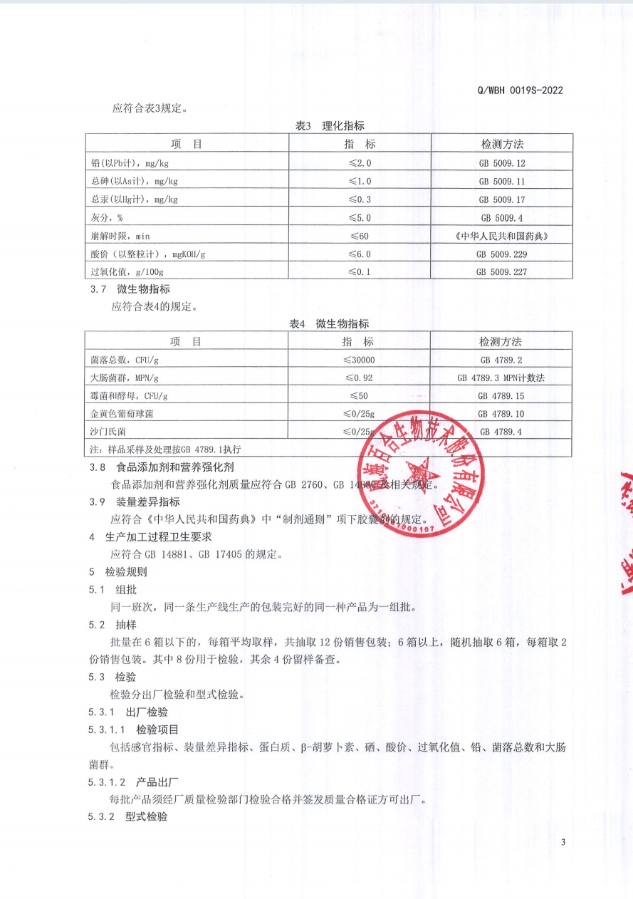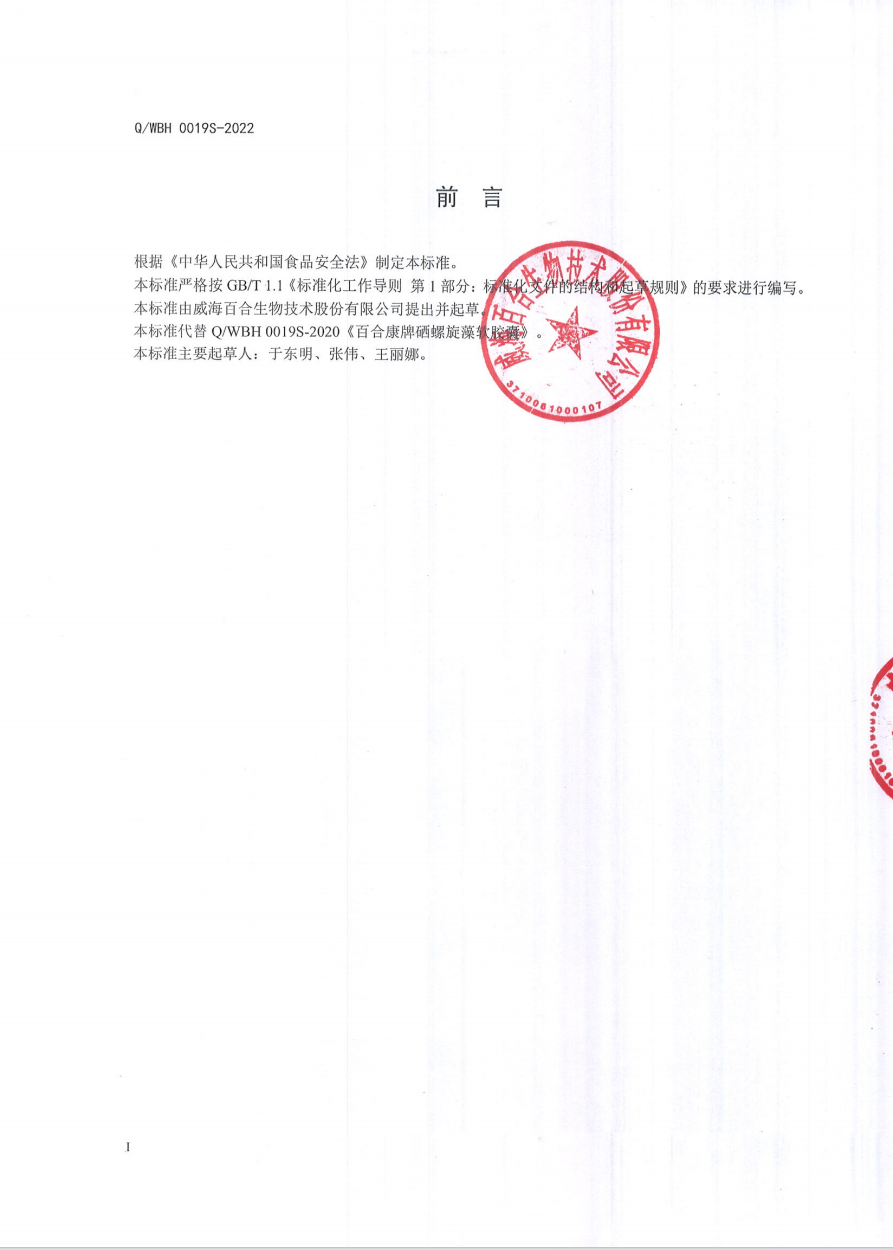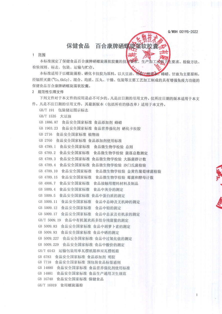 關于百合康牌硒螺旋藻軟膠囊的企業(yè)標準的公示