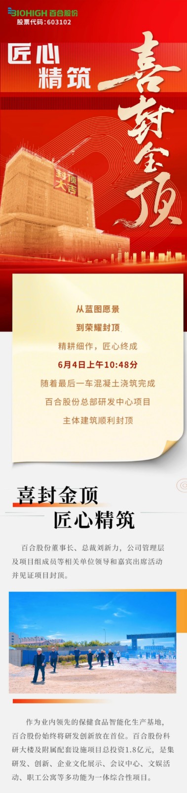 榮耀封頂!百合股份研發(fā)中心項目封頂儀式隆重舉行
