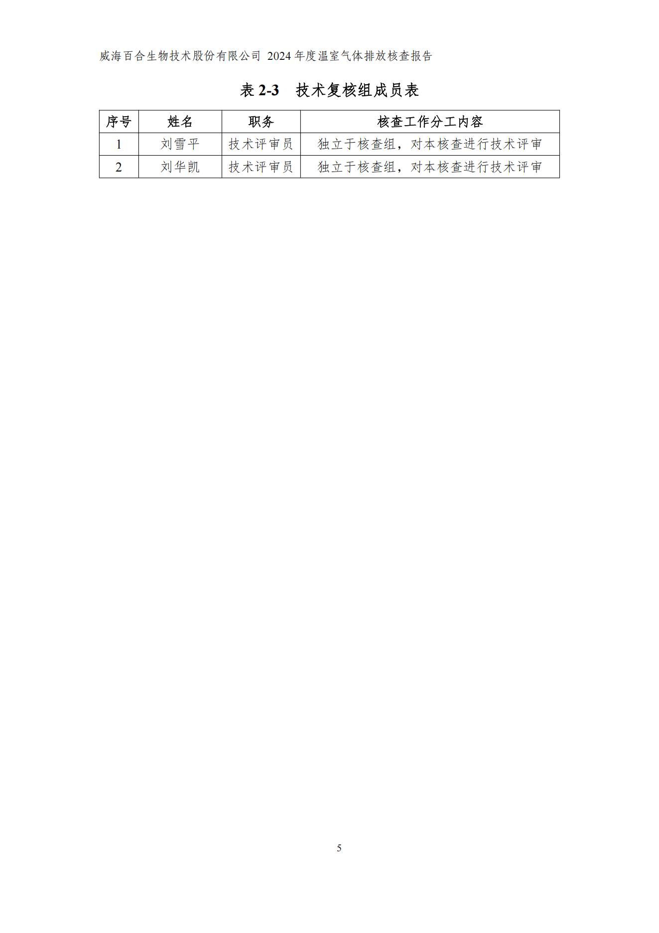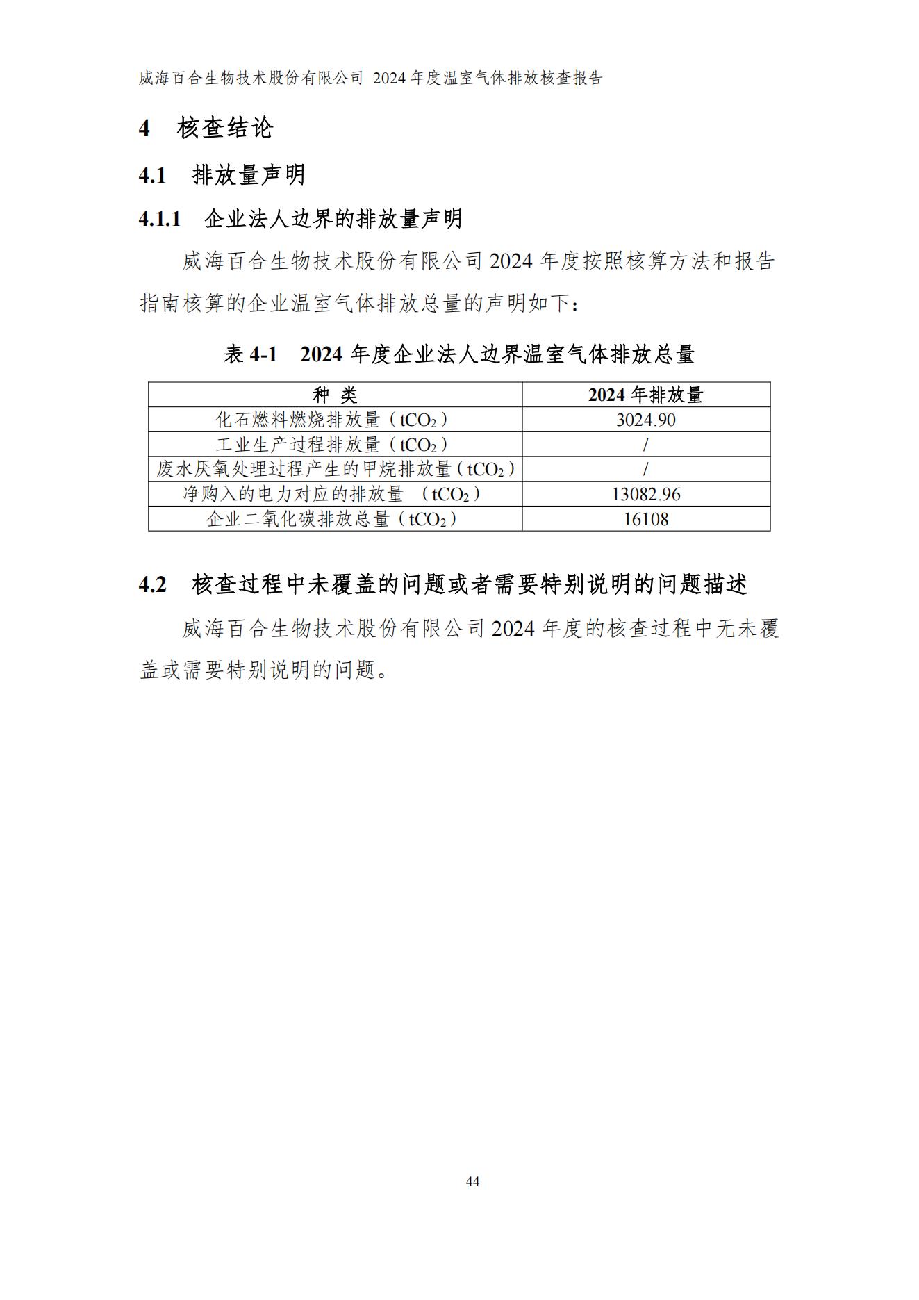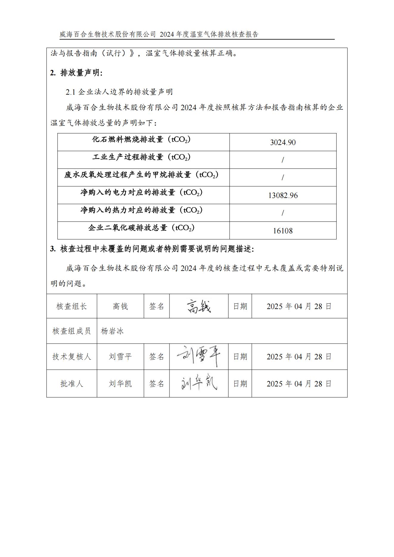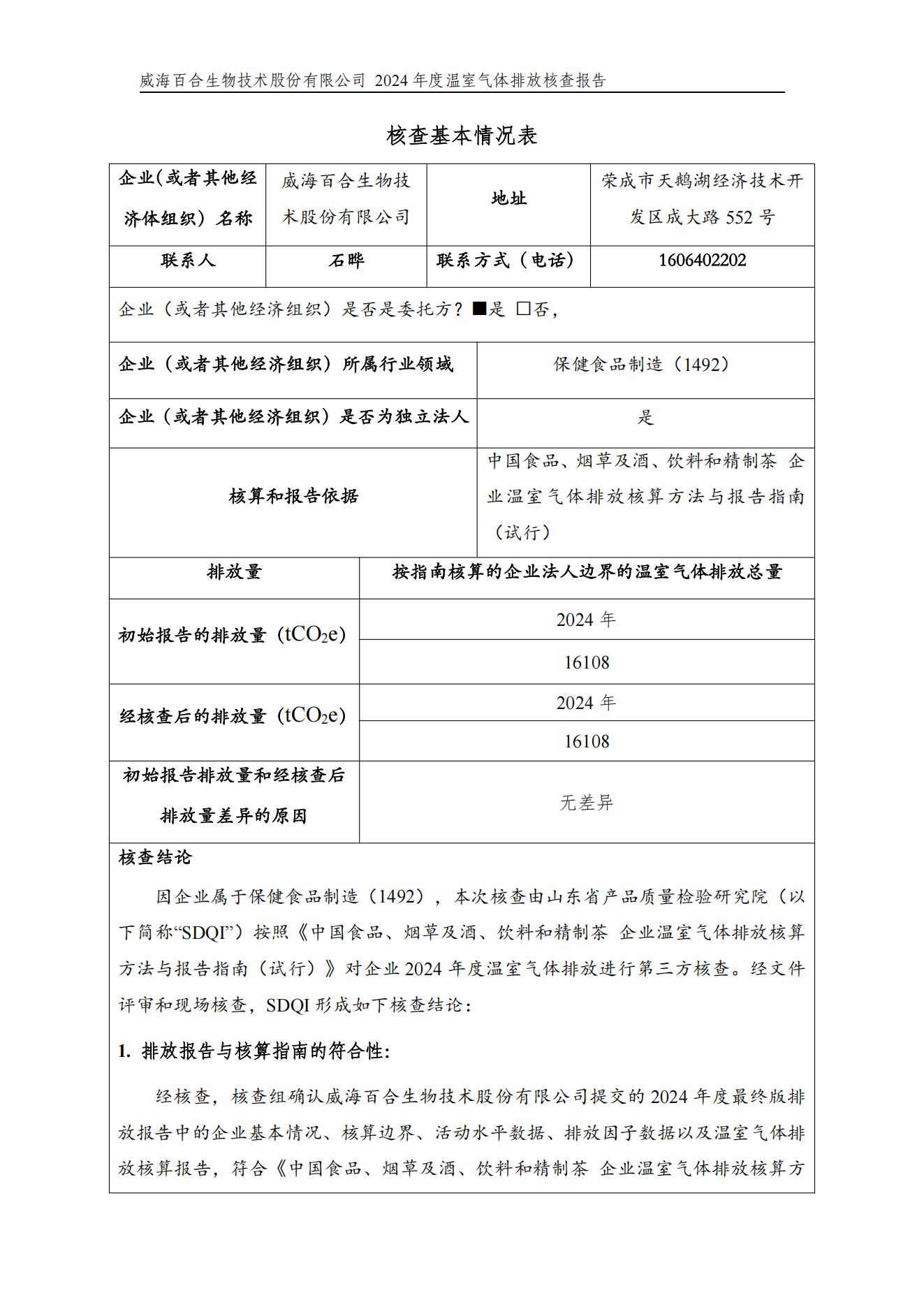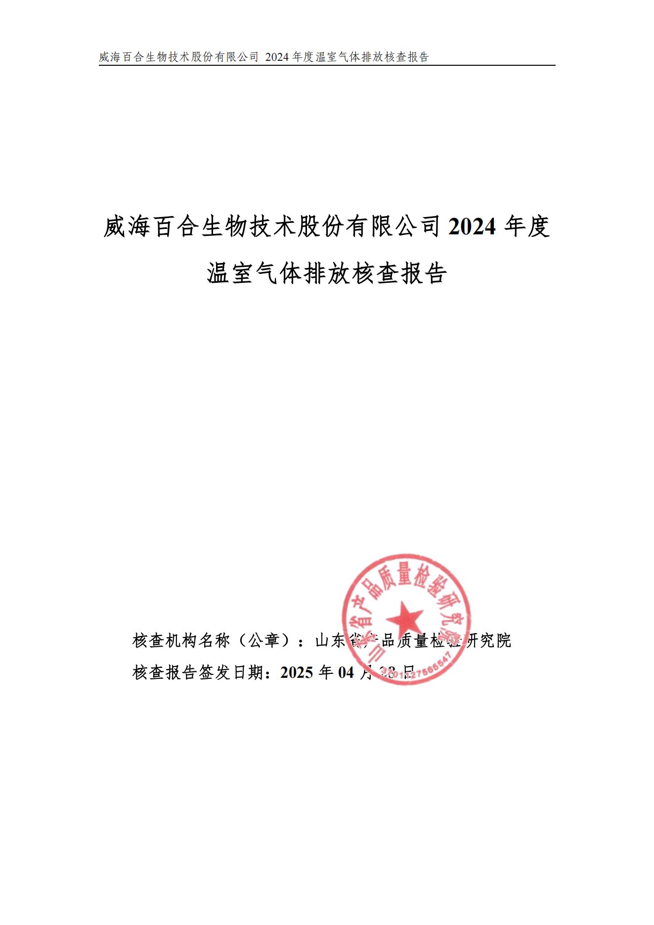 威海百合生物技術(shù)股份有限公司2024年度溫室氣體排放核查報告