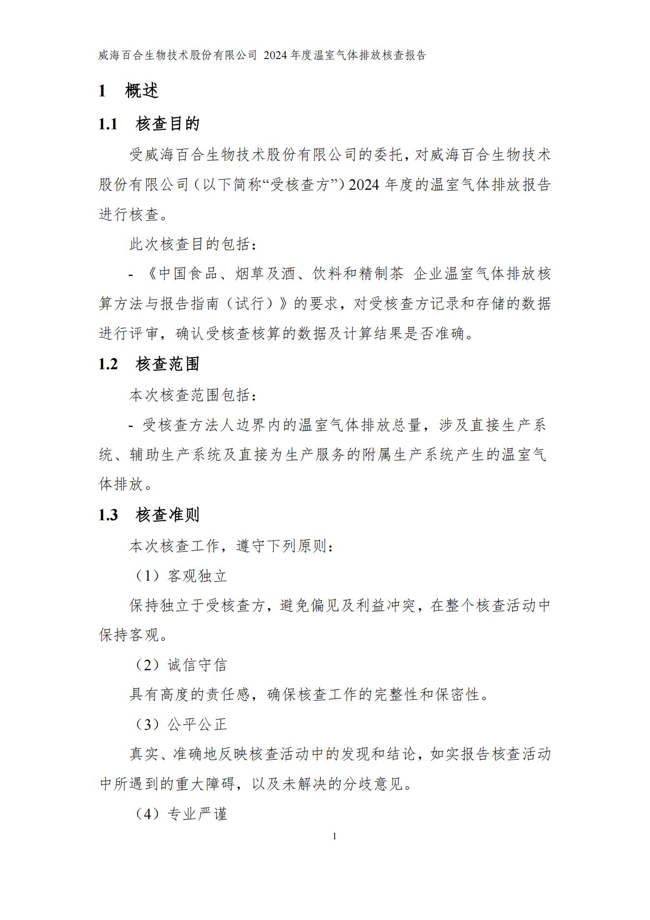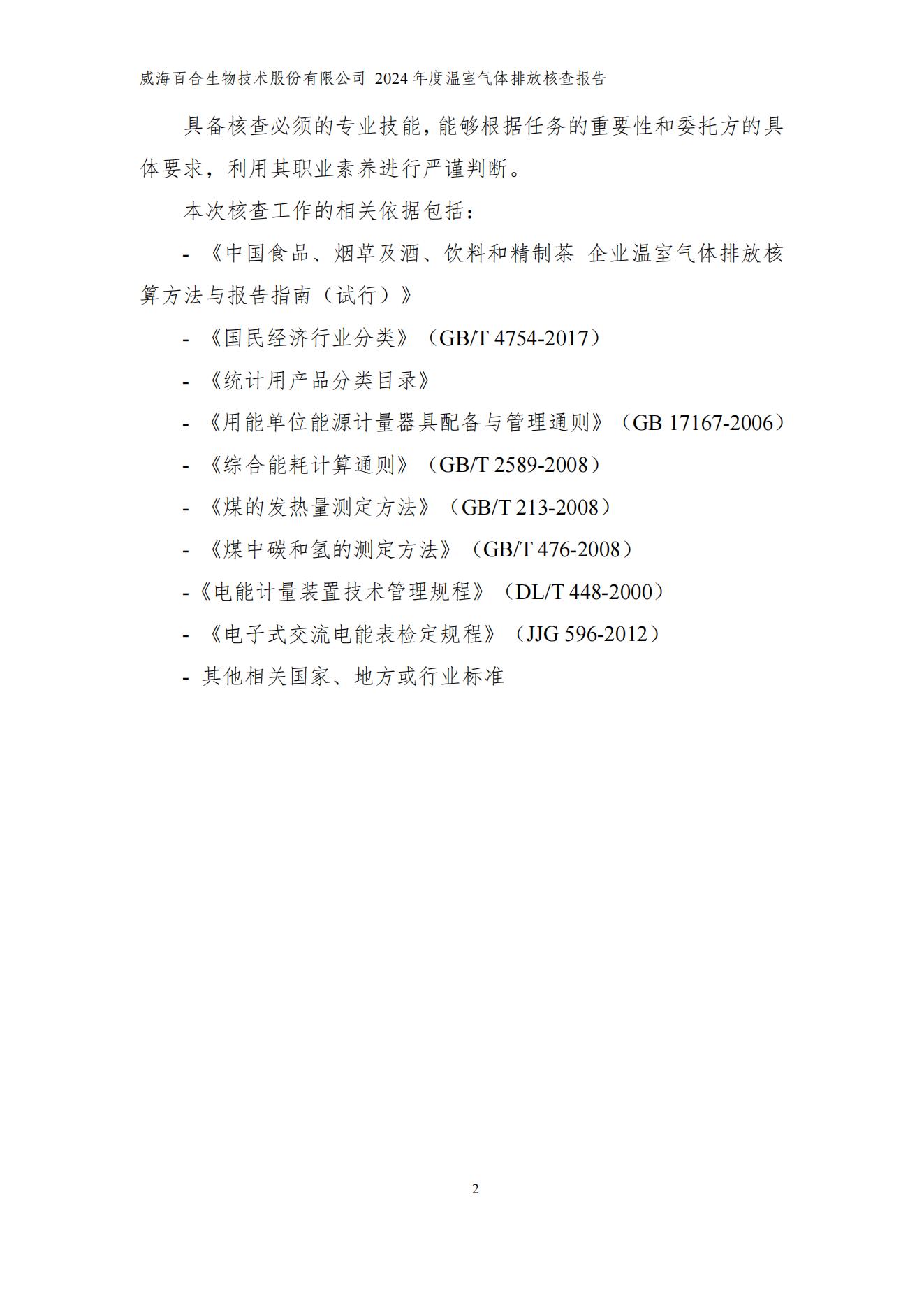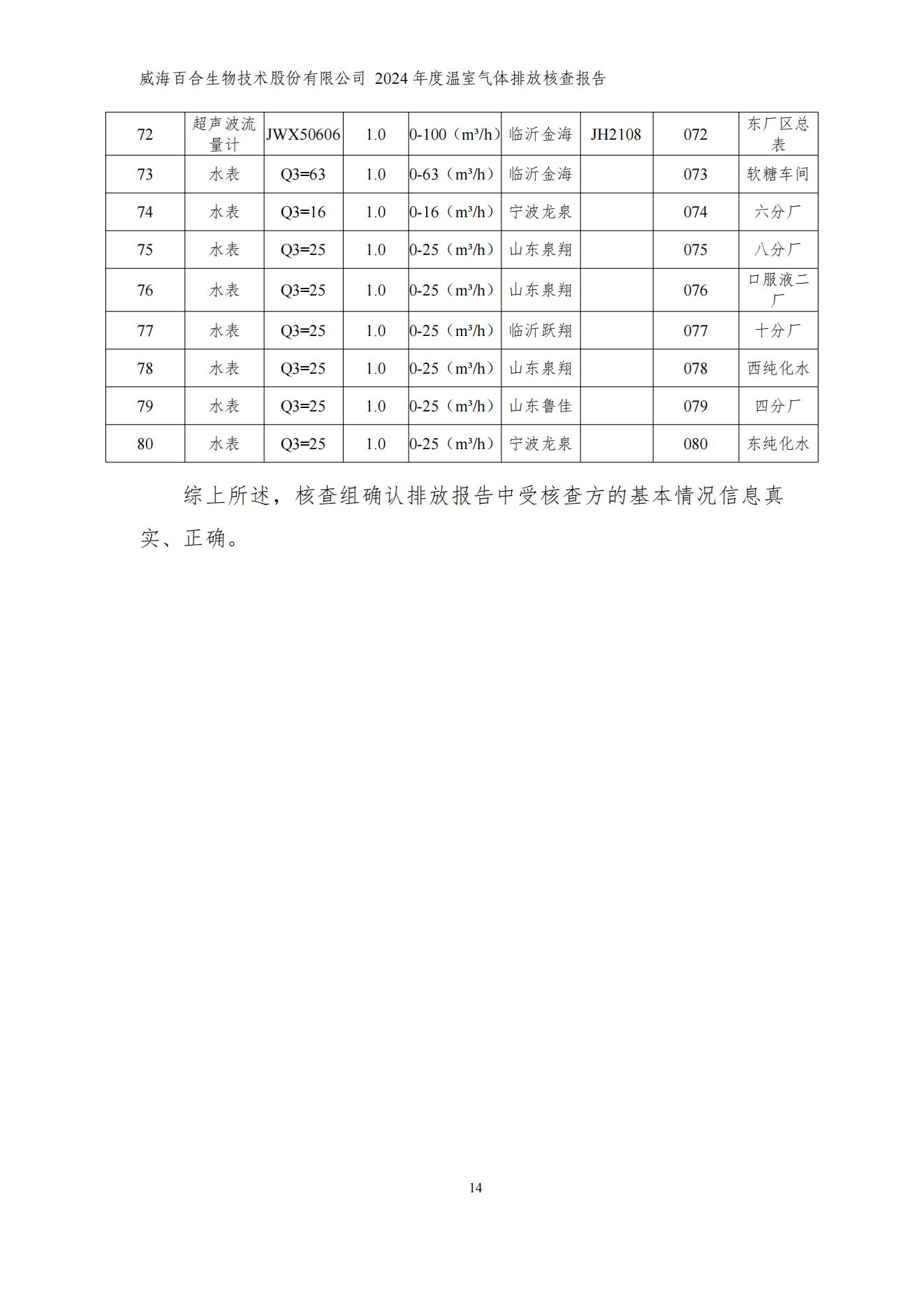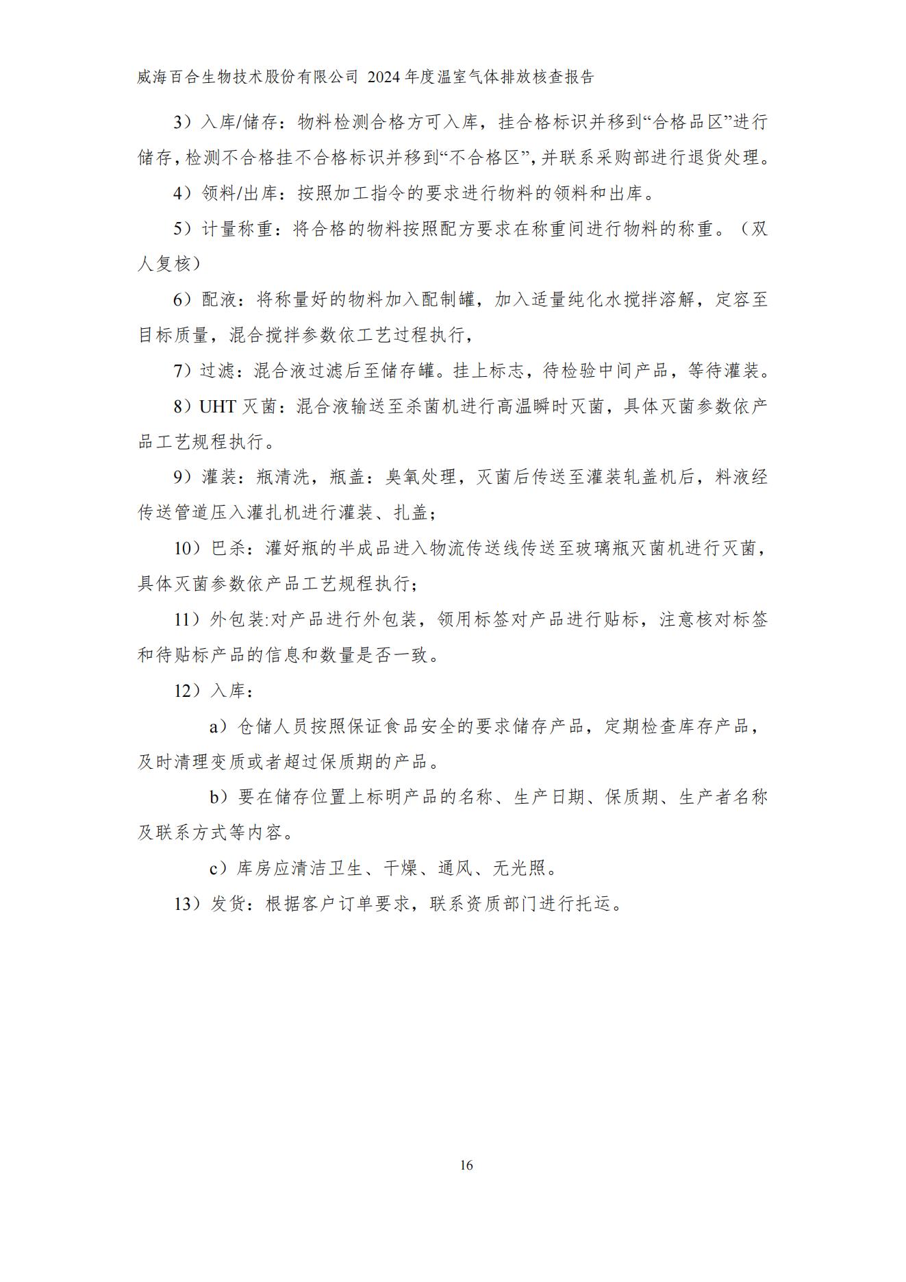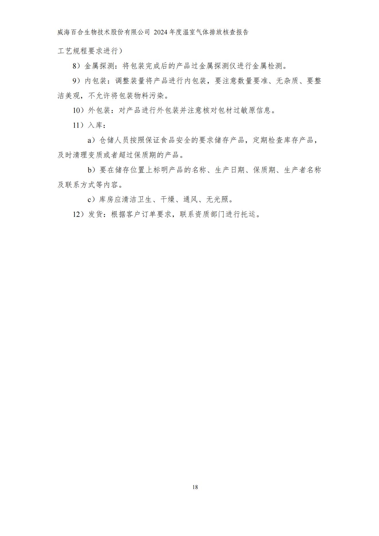 威海百合生物技術(shù)股份有限公司2024年度溫室氣體排放核查報告