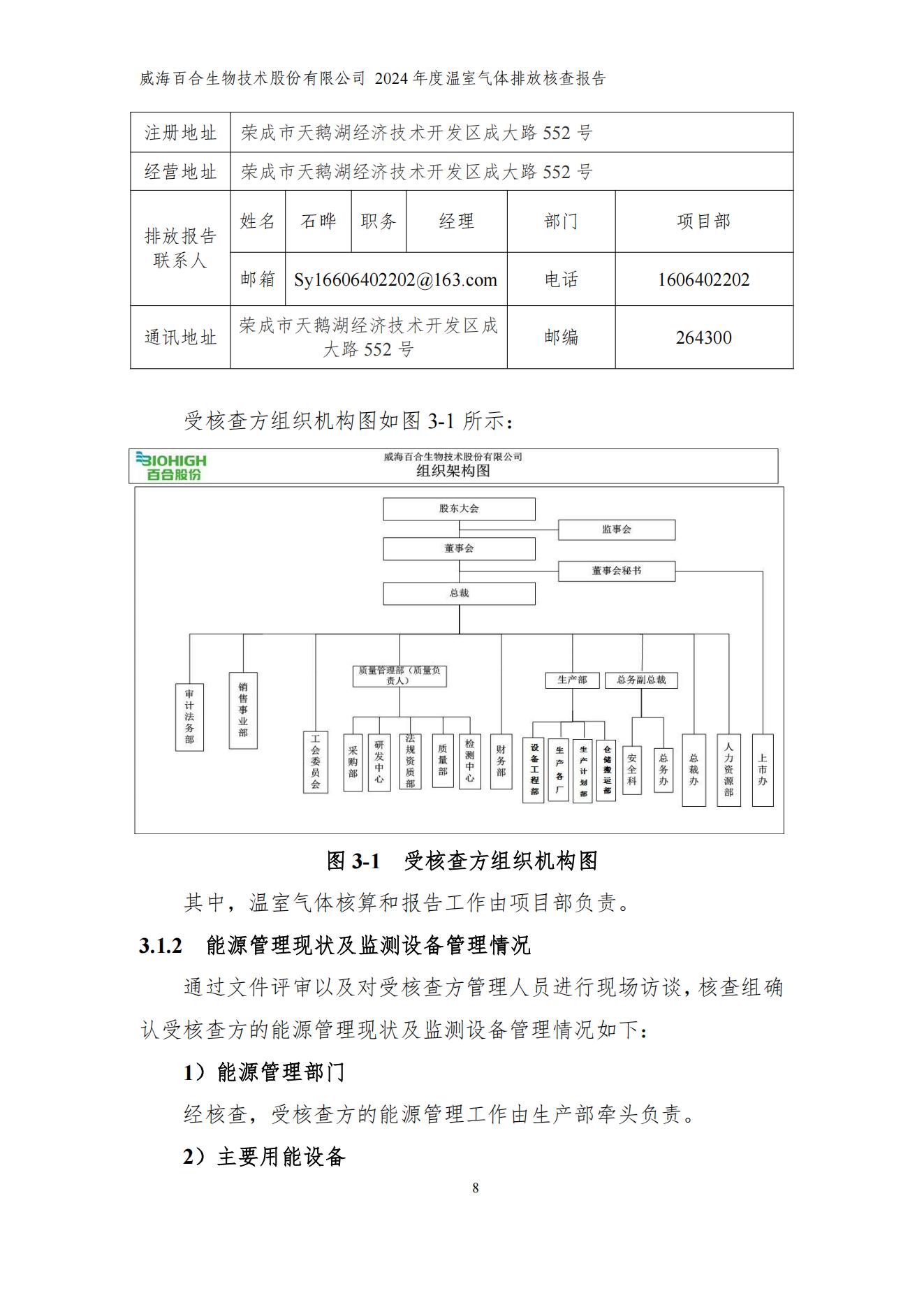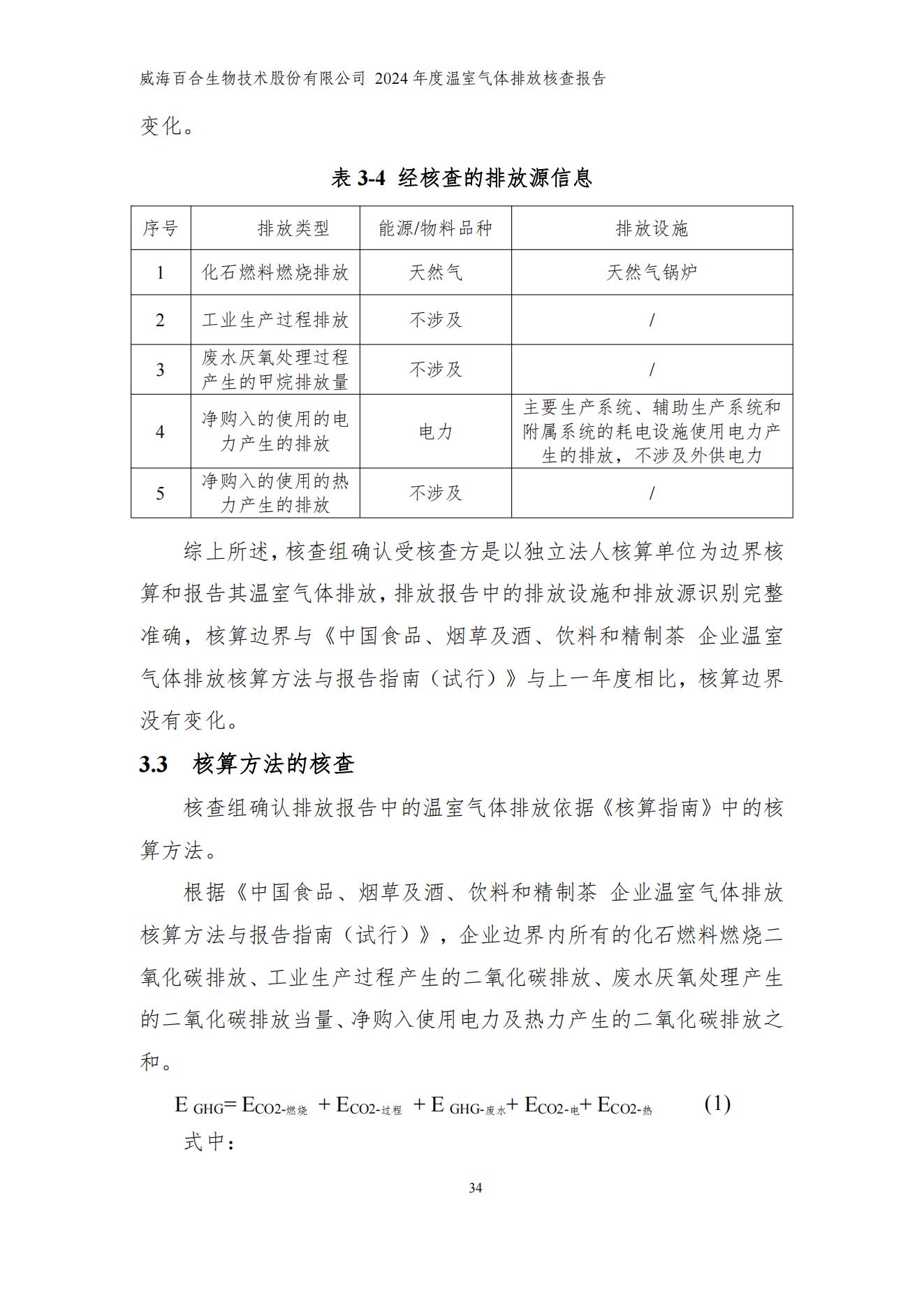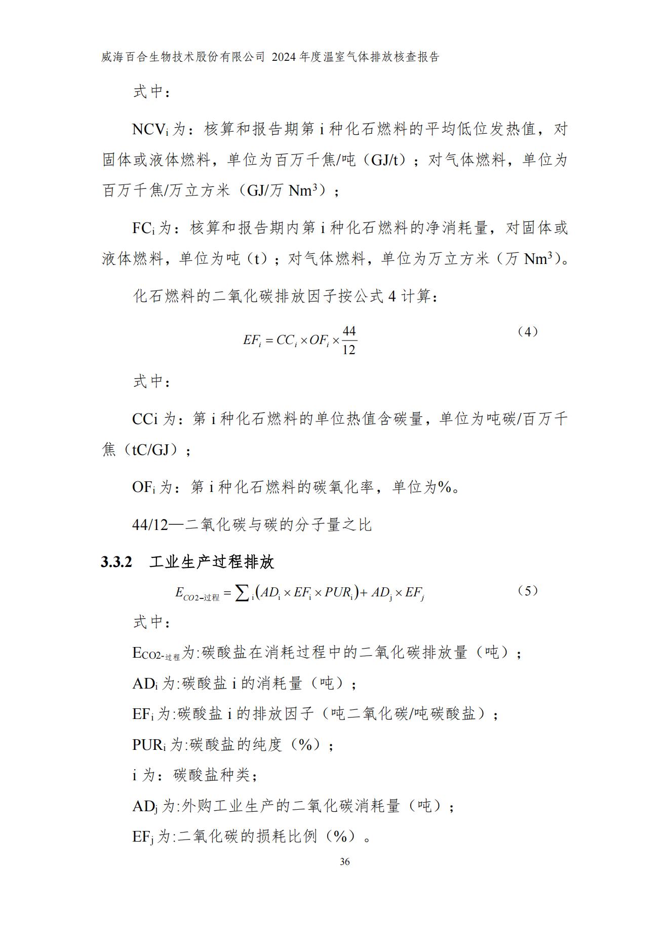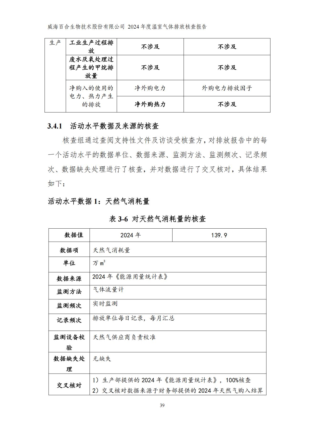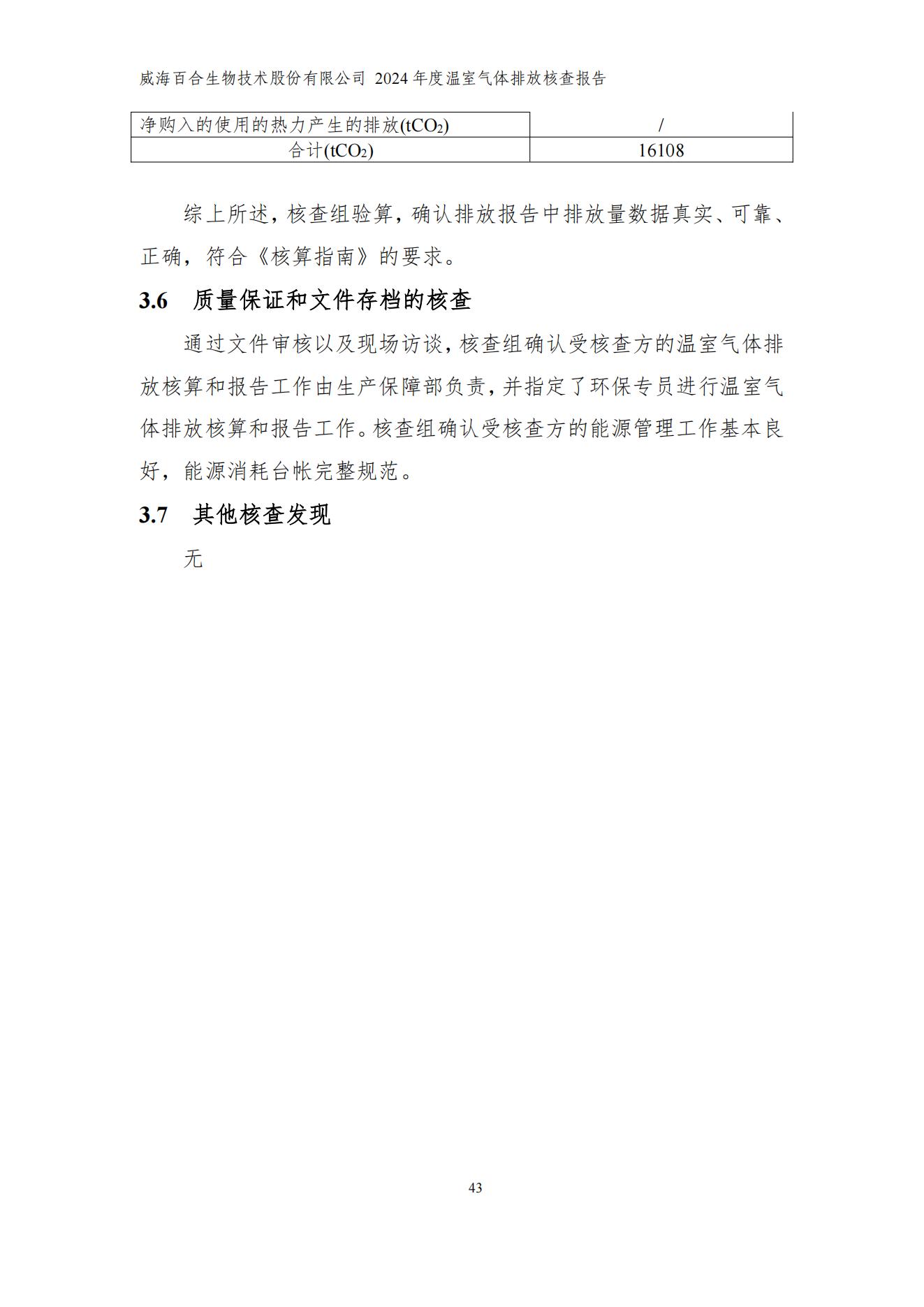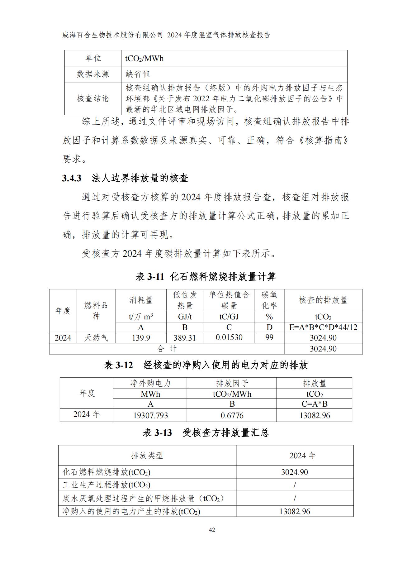 威海百合生物技術(shù)股份有限公司2024年度溫室氣體排放核查報告