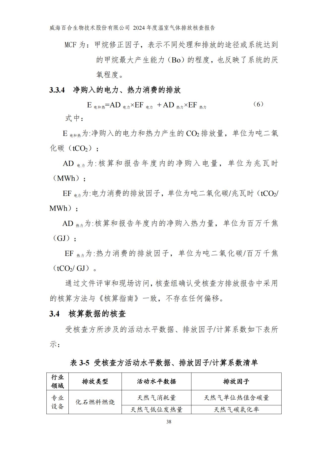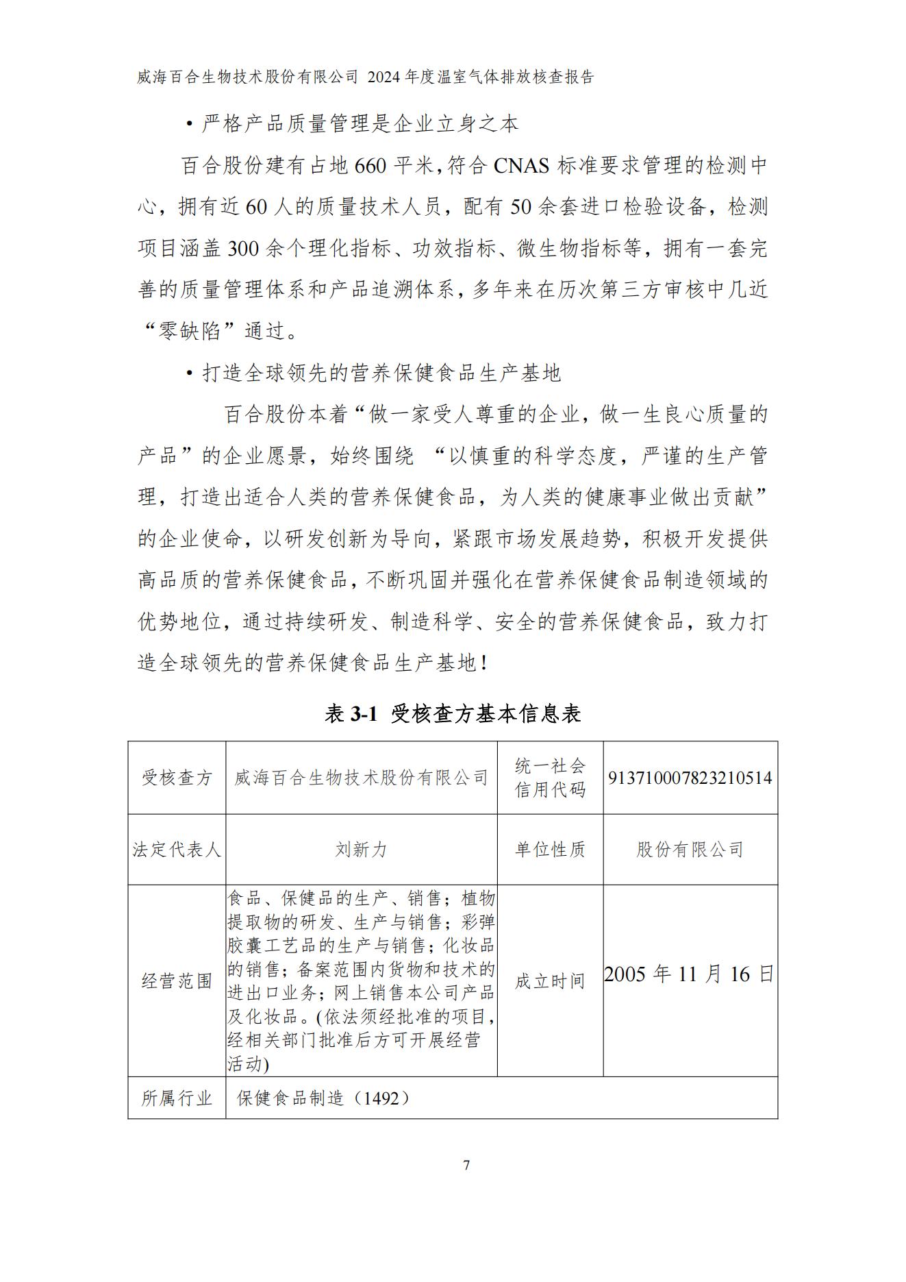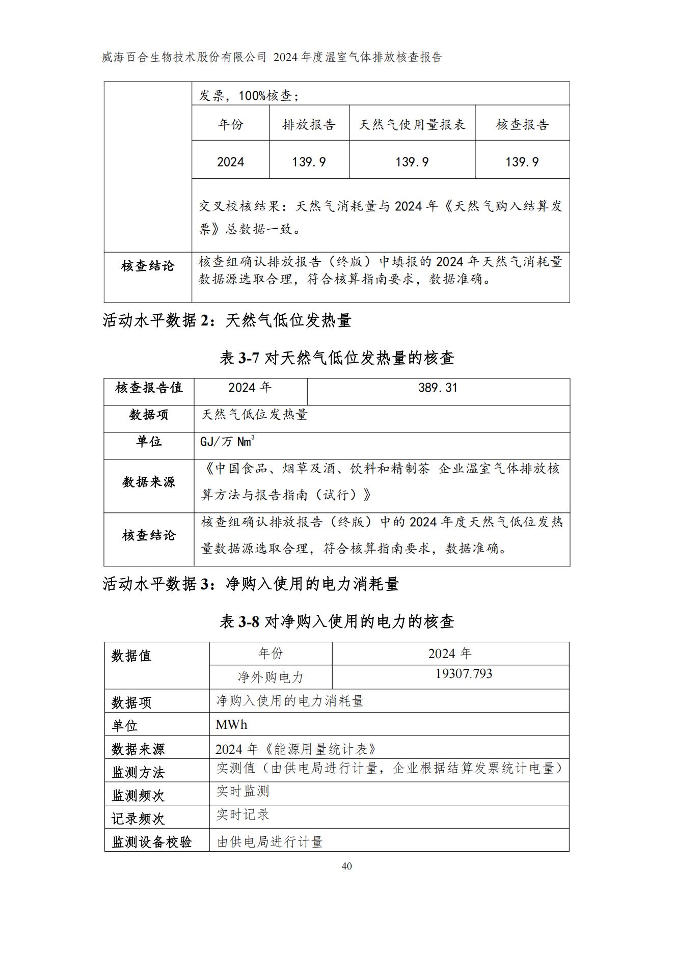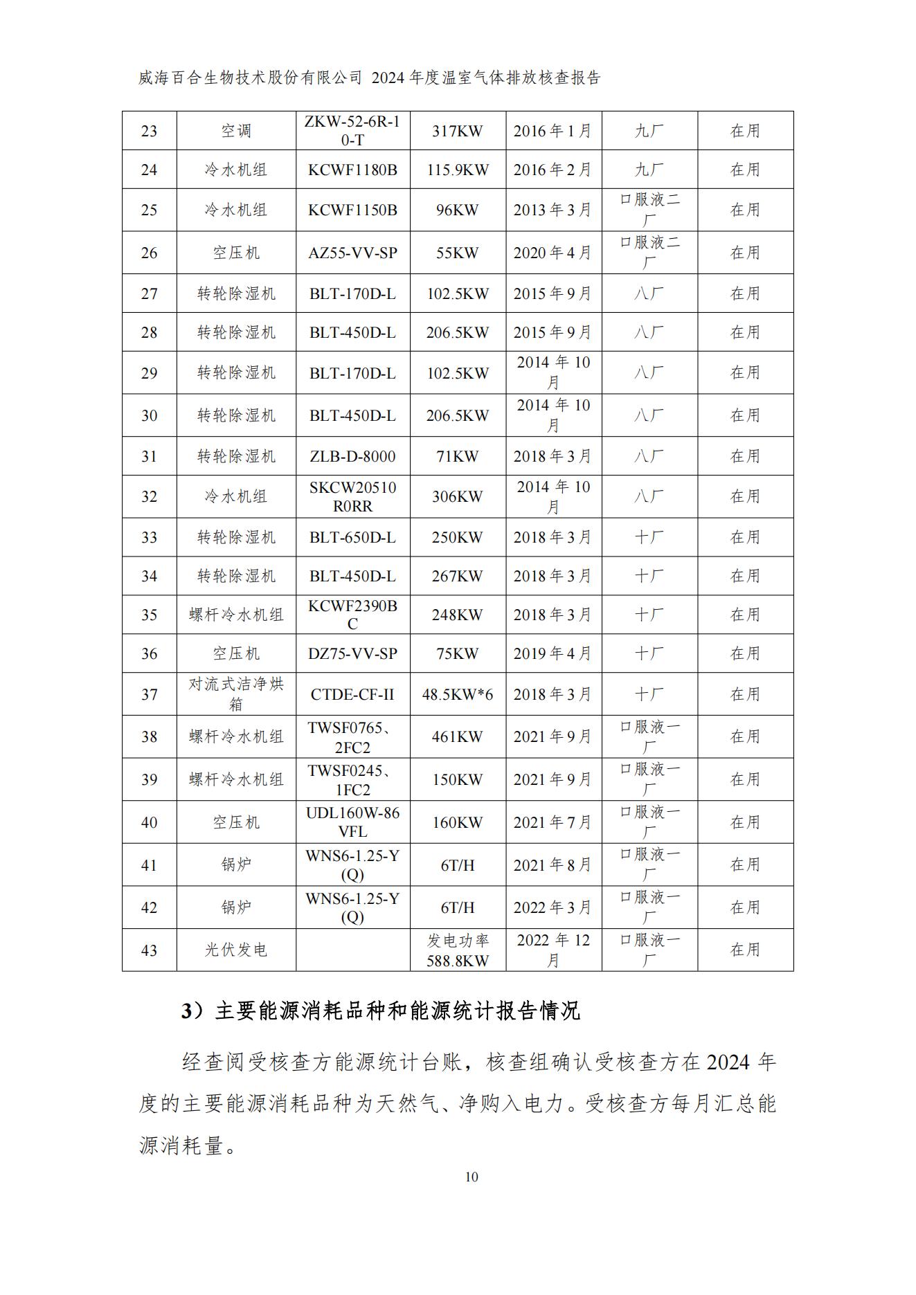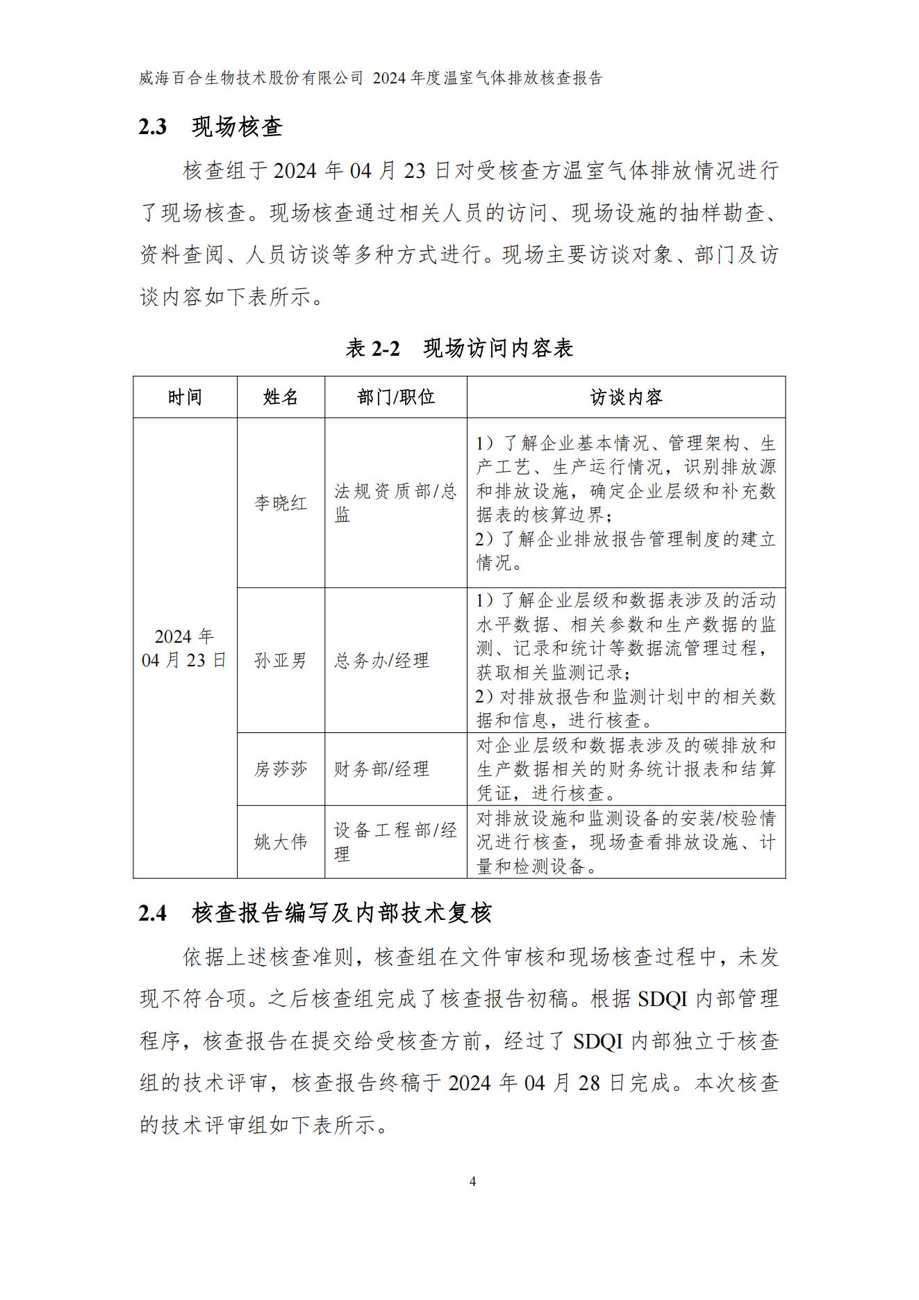 威海百合生物技術(shù)股份有限公司2024年度溫室氣體排放核查報告