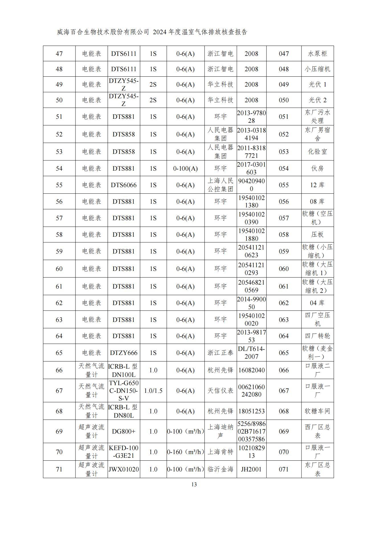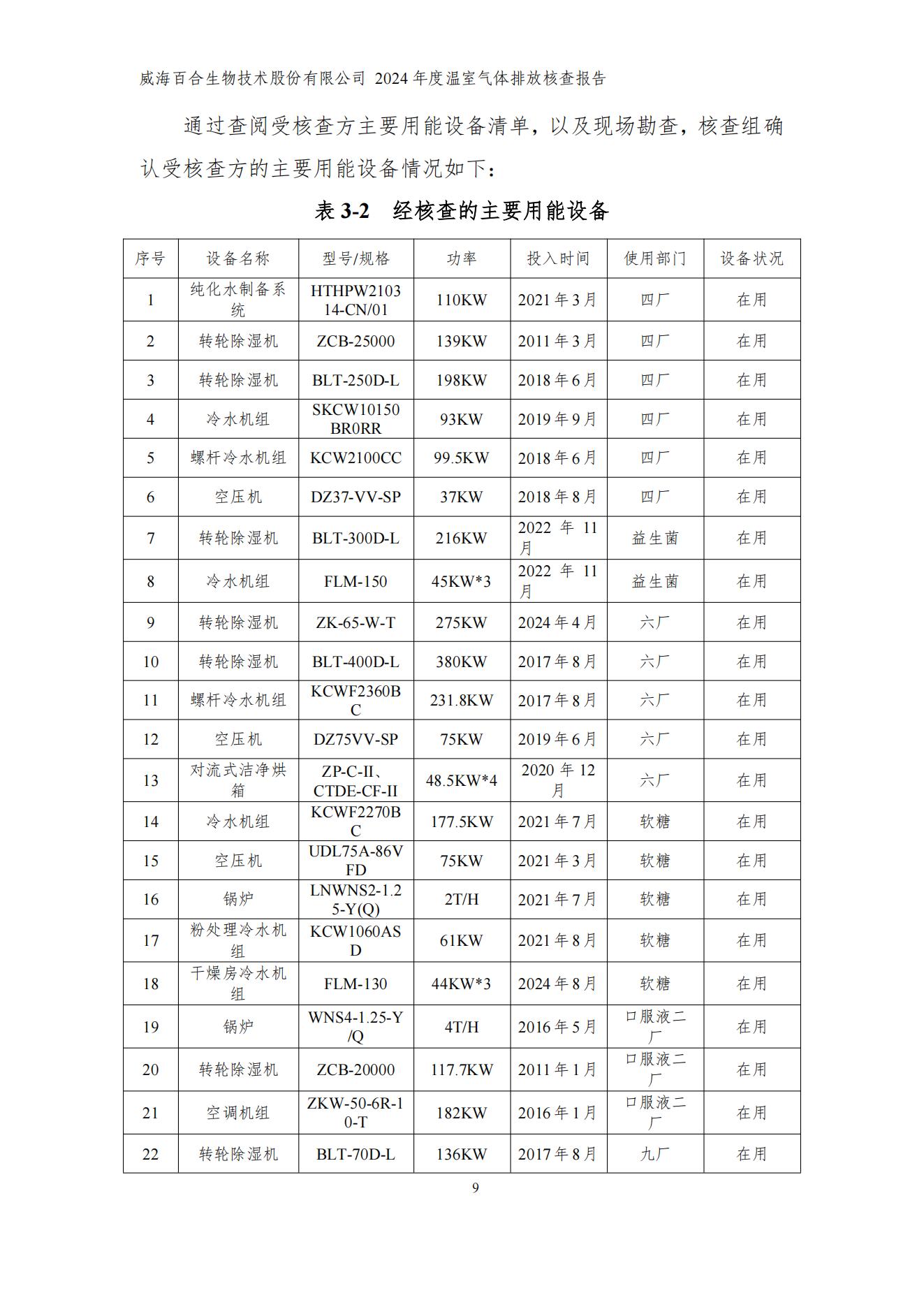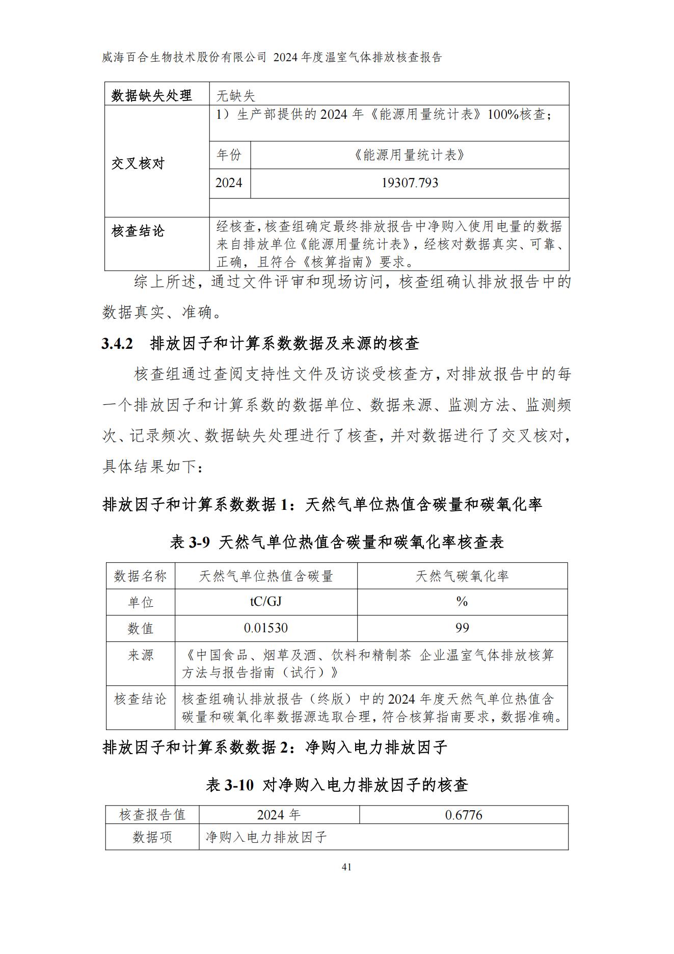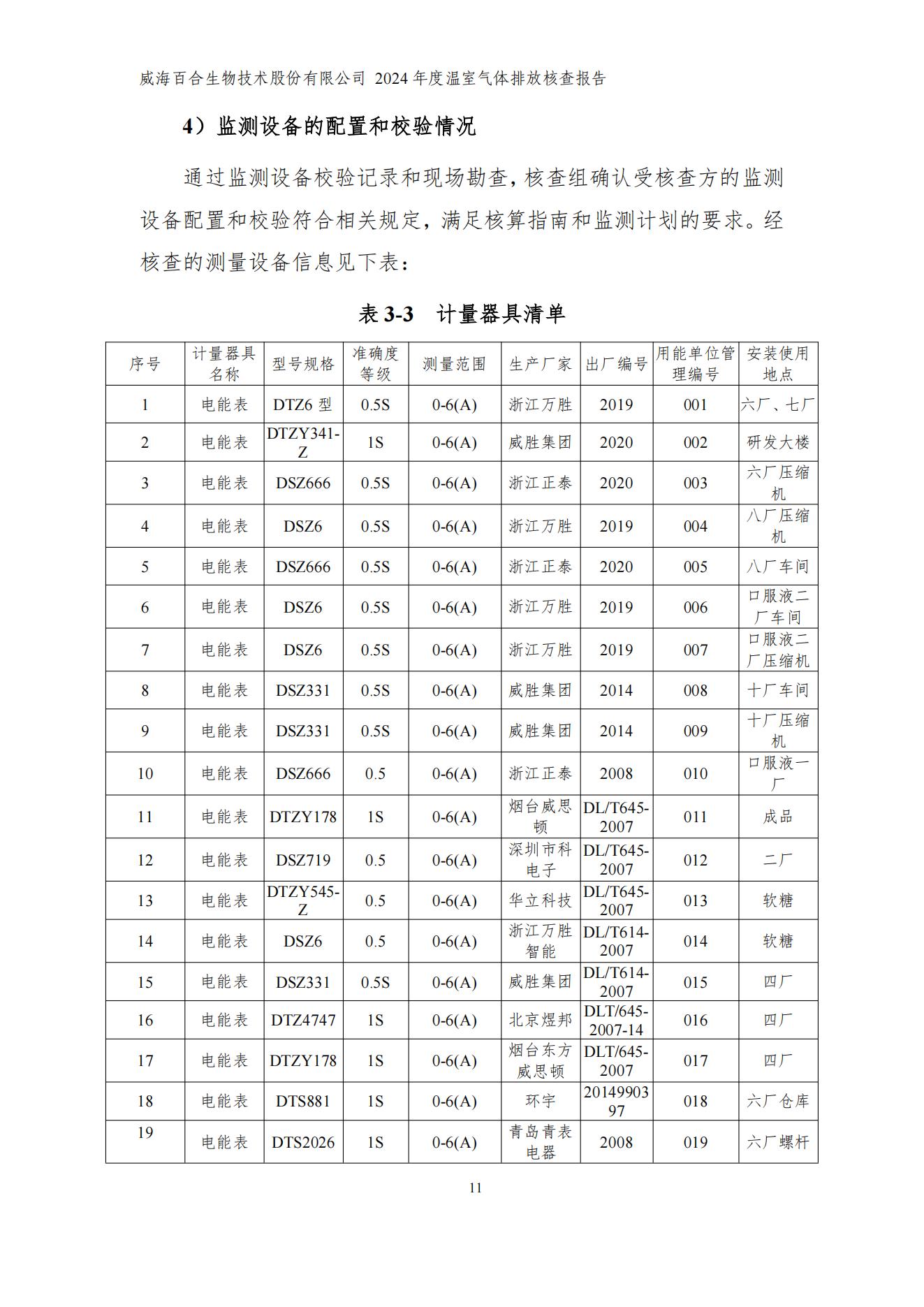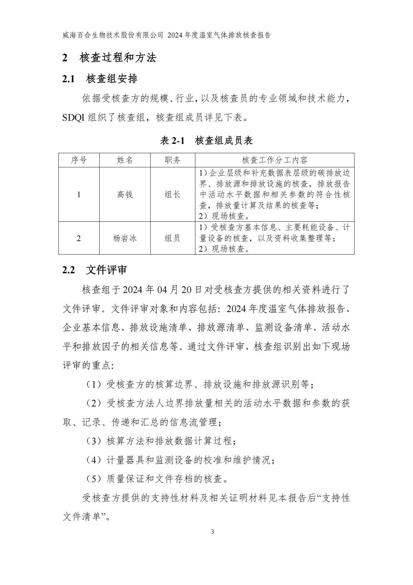 威海百合生物技術(shù)股份有限公司2024年度溫室氣體排放核查報告