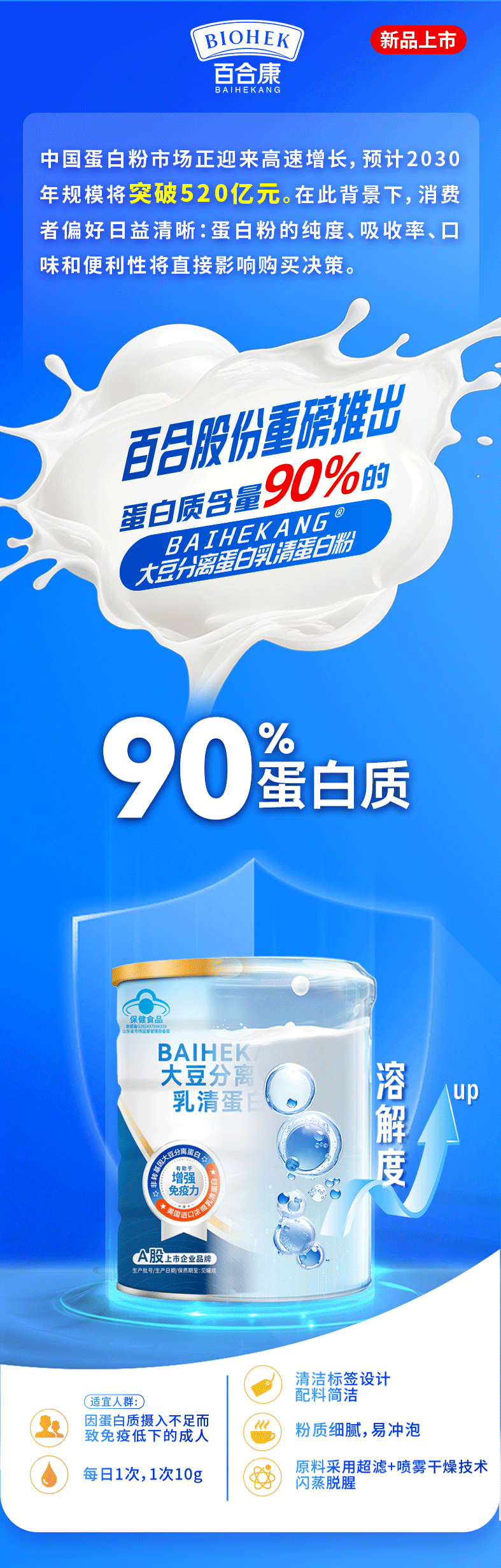 爆品升級!百合股份重磅推出90%含量蛋白粉