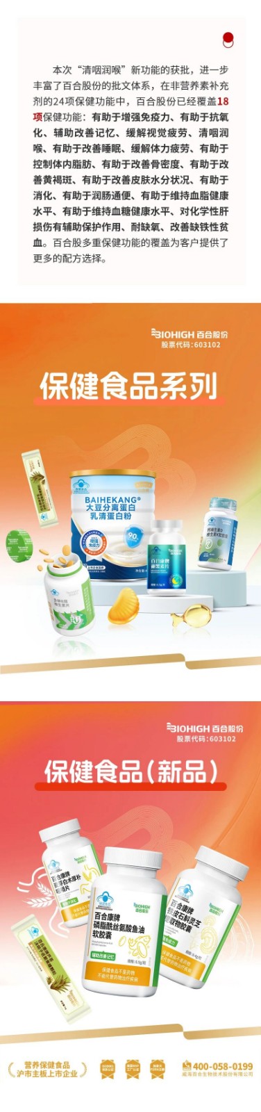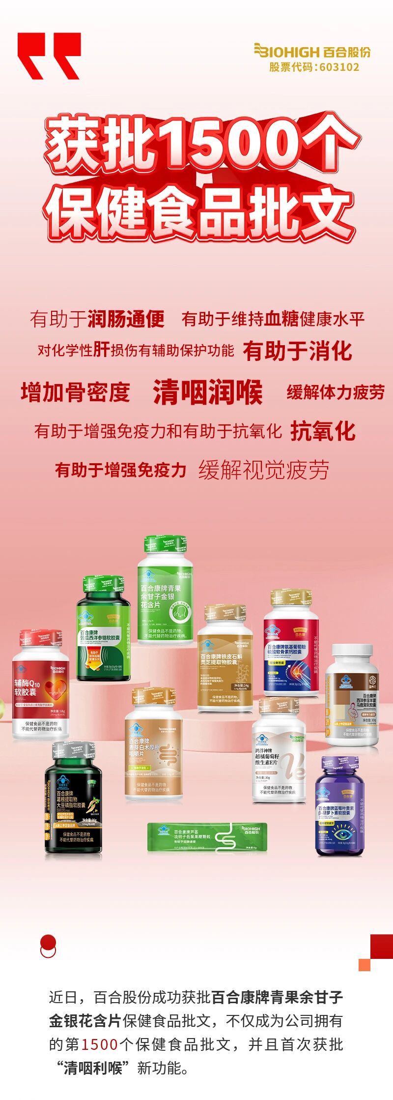 第1500個!百合股份獲批“清咽利喉”保健食品新批文