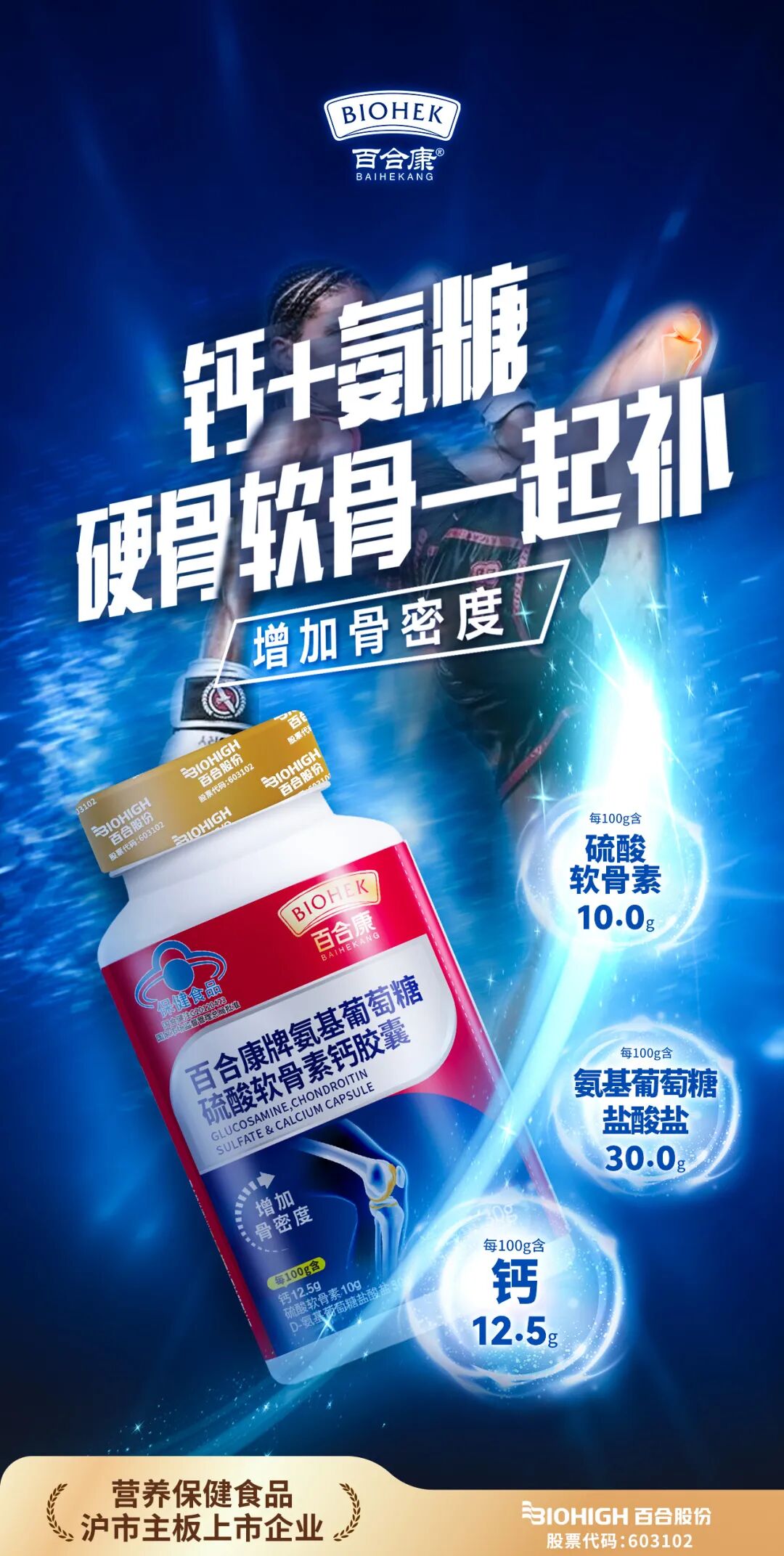 百合康牌氨基葡萄糖硫酸軟骨素鈣膠囊,以“牛骨提取硫酸軟骨素”區(qū)別與行業(yè)同品類產(chǎn)品,彰顯產(chǎn)品實(shí)力,精準(zhǔn)貼合中老年人關(guān)節(jié)健康養(yǎng)護(hù)需求,采用科學(xué)配比助力;